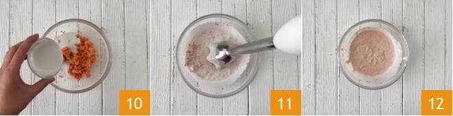 Mit der Sahne verdünnen 10 und erneut pürieren 11, bis eine cremige Mischung entsteht 12.