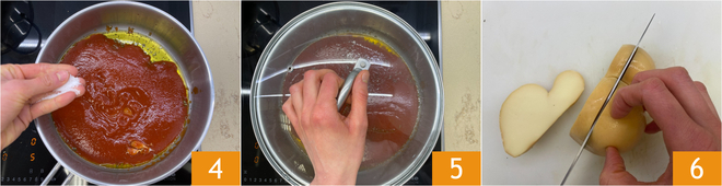 Salzt 4, deckt mit dem Deckel ab 5 und lasst bei schwacher Hitze etwa 30 Minuten köcheln. In der Zwischenzeit schneidet die Provola in Scheiben von etwa 1 cm Dicke 6.