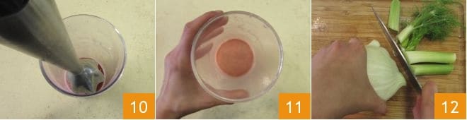Alles zusammen mixen (10-11). Den Fenchel waschen und die grünen Teile abschneiden 12.