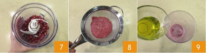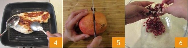 und braten es weitere 25 Minuten von der anderen Seite 3. In der Zwischenzeit bereiten Sie die Sauce zu: Nehmen Sie den Granatapfel, schneiden Sie ihn in zwei Hälften 5 und entkernen Sie ihn, indem Sie die Kerne in einer Schüssel sammeln 6; behalten Sie einige zur abschließenden Dekoration zurück,
