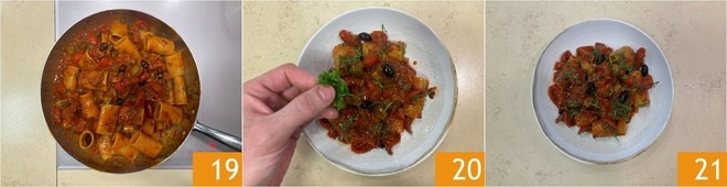 Umrühren 19 und servieren, indem Sie nach Belieben mit zusätzlicher frischer Petersilie garnieren 20. Die Rigatoni alla puttanesca und nduja sind bereit, genossen zu werden 21!