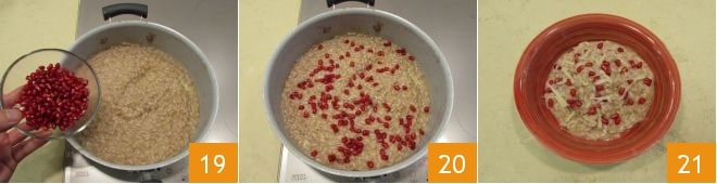 Sie können die ganzen Granatapfelkerne hinzufügen (19-20) und das Risotto mit Lauchcreme und Granatapfel sofort servieren 21!