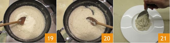 während Sie den Topf schütteln und mit einem Holzlöffel umrühren, bis es gut vermischt ist. Alles ist bereit, Sie müssen nur noch anrichten. Mit einem Löffel verteilen Sie das Risotto auf dem Teller 21,