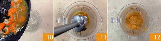 Geben Sie alles in ein Glas 10 und pürieren Sie es mit einem Stabmixer 11, bis Sie eine glatte und homogene Creme erhalten 12.