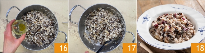Mit dem nativen Olivenöl extra verrühren 16. Mit Salz und Pfeffer abschmecken, ein letztes Mal mit einem Spatel umrühren 17 und Ihr Risotto mit Radicchio und Wurst ist bereit zum Genießen 18!