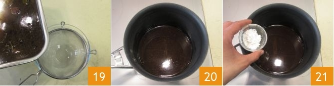 und filtern Sie die Sauce durch ein Sieb 19, geben Sie sie in einen kleinen Topf 20 und fügen Sie die Maisstärke hinzu 21