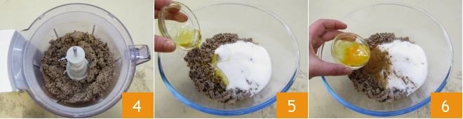 schalten Sie dann die Klingen ein und erstellen Sie eine krümelige Masse 4. Geben Sie sie in eine Schüssel und fügen Sie den Zucker und den Honig hinzu 5. Dann geben Sie auch das Eigelb dazu 6. Fügen Sie auch den gemahlenen Zimt und die geriebene Zitronenschale hinzu.