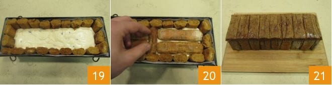 achten Sie darauf, etwa 1 cm vom Rand entfernt zu bleiben 19. Bedecken Sie die Oberfläche des Stracchino mit weiteren in der Kaffee-Tränke getränkten Savoiardi 20. Stellen Sie das Stracchino della Duchessa für mindestens 2-3 Stunden in den Gefrierschrank: Das Dessert sollte gut gekühlt sein, stürzen Sie es auf einen Servierteller und entfernen Sie die Form 21