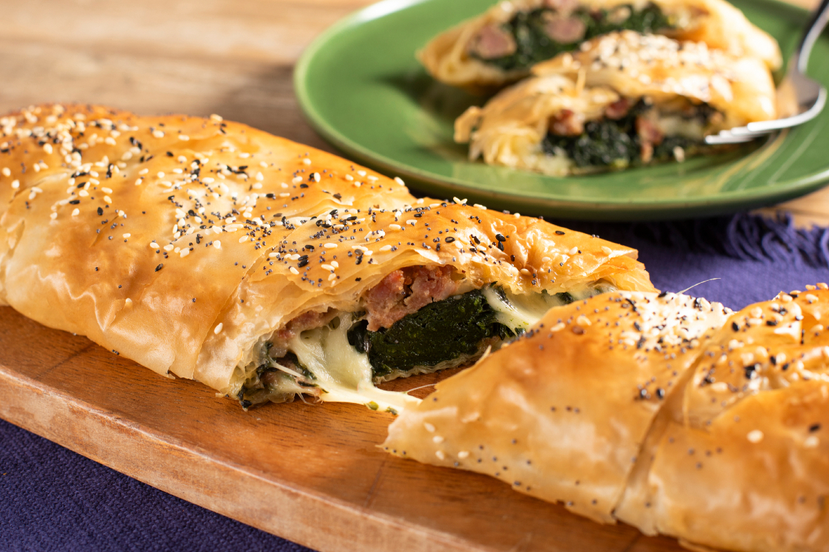 Strudel aus Filoteig mit Salsiccia und Spinat