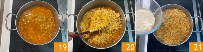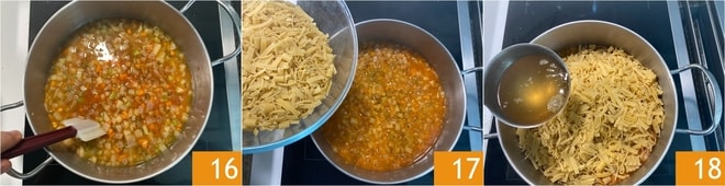 Rühren Sie um und kochen Sie es 25 Minuten bei mittlerer Hitze 16. Nach dieser Zeit geben Sie die gemischte Pasta hinzu 17 und bedecken Sie sie mit der restlichen Gemüsebrühe 18.