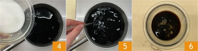 Fügen Sie auch den Zucker 4 hinzu und bringen Sie die Mischung zum Kochen. Lassen Sie sie bei mittlerer Hitze köcheln, bis die Mischung auf die Hälfte reduziert ist, und rühren Sie gelegentlich mit einem Löffel um 5: Es dauert etwa 30 Minuten, bis die Endkonsistenz recht flüssig und homogen ist. Sobald sie fertig ist, lassen Sie die Sauce zuerst auf Raumtemperatur und dann im Kühlschrank abkühlen. Die Teriyaki-Sauce ist bereit zur Verwendung 6!