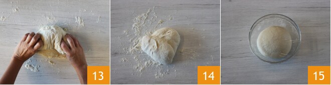 bis ein glatter und homogener Teig entsteht 13 14. Dies dauert ca. 15 Minuten. Lege den Teig in eine Schüssel, bedecke ihn mit Frischhaltefolie 15