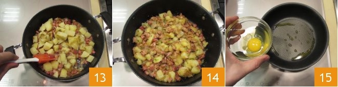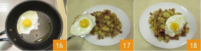 umrühren und noch einen Moment lang ziehen lassen 13. Ihr Gröstl 14 ist fertig, es fehlt nur noch das Spiegelei. In einer kleinen Pfanne mit etwas Öl ein Ei nach dem anderen aus einer kleinen Schüssel hineingeben 15.