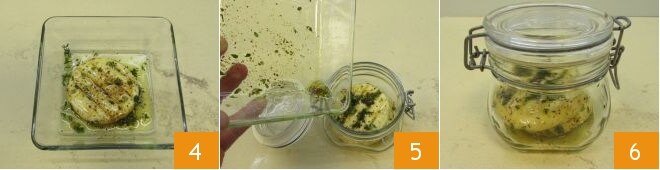 Bestreichen Sie die Tomini gleichmäßig von allen Seiten mit Öl 4, legen Sie sie dann in ein Einmachglas und bedecken Sie sie mit der Marinade 5, schließen Sie den Deckel 6 und lassen Sie sie bei Raumtemperatur 1 Stunde marinieren (ideal wäre es, sie über Nacht im Kühlschrank zu lassen und dann 1 Stunde vor dem Kochen herauszunehmen).