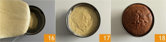 Gießen Sie die Mischung dann in eine 20 cm große Backform, die zuvor mit Backpapier ausgelegt wurde 16. Backen Sie im vorgeheizten statischen Ofen bei 180 ° für 40 Minuten auf der mittleren Schiene, die Zeiten können je nach Ofen leicht variieren, machen Sie immer den Zahnstocher-Test 17. Sobald der Kuchen fertig ist, lassen Sie ihn abkühlen 18.