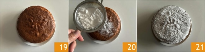 Stürzen Sie Ihren Kuchen mit griechischem Joghurt auf einen Teller 19, dekorieren Sie ihn mit Puderzucker 20 und genießen Sie ihn 21!