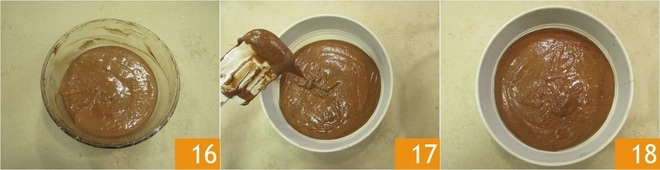 Sie sollten eine glatte und einheitliche Masse erhalten 16. Fetten und mehlen Sie nun eine Springform von 24-26 cm ein (so wird es einfacher, die Torta Tenerina aus der Form zu lösen) und geben Sie den frisch zubereiteten Teig hinein (17-18). Backen Sie im vorgeheizten statischen Ofen bei 180° C für 25 Minuten (die Verwendung eines Umluftofens wird nicht empfohlen, da der äußere Teil des Kuchens zu viel und der innere Teil zu wenig gebacken werden könnte).
