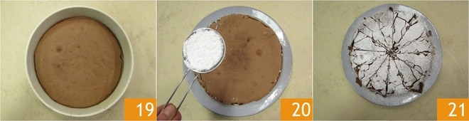 Nachdem Sie den Kuchen aus dem Ofen genommen haben 19, lassen Sie Ihre Torta Tenerina abkühlen, bevor Sie sie aus der Form lösen. Mit Puderzucker dekorieren 20 und servieren 21.