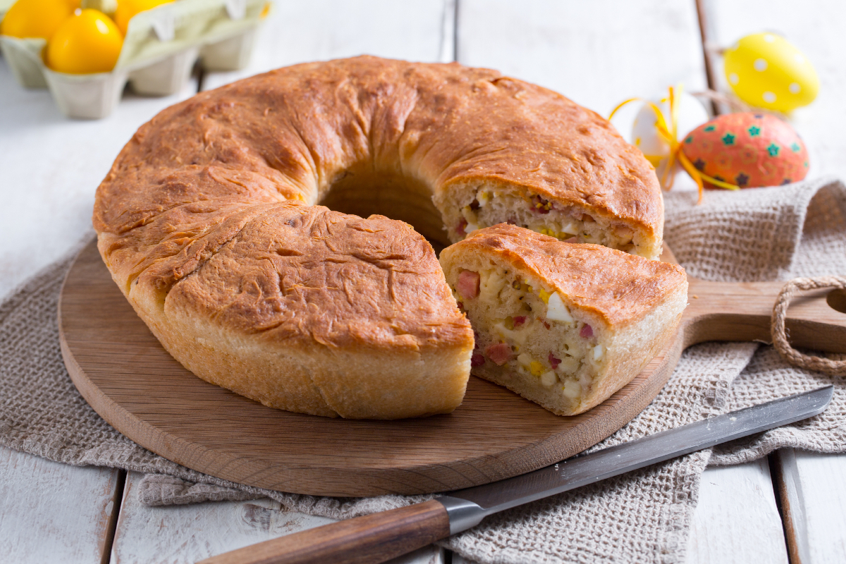 Der Tortano ist ein Herzhafter Gugelhupf aus der Region Kampanien, der vor allem zur Osterzeit zubereitet wird, zusammen mit der rustikalen neapolitanischen Pizza chiena und originelleren Versionen wie der Herzhafte Pastiera. Genau wie das berühmte Casatiello ist es ein rustikales Brot, das mit einem Teig aus Schweineschmalz und verschiedenen Wurst- und Käsesorten zubereitet wird. Früher wurde es als "Kühlschrankleerung" gemacht, um Reste von Feiertagen wiederzuverwenden. Im Gegensatz zum Casatiello, bei dem die Eier zur Dekoration obenauf gelegt werden, werden in diesem Rezept die hartgekochten Eier zur Füllung hinzugefügt, zusammen mit den Schwartemagen, der Salami und den Käsesorten, ganz nach Tradition. Der Tortano ist ein neapolitanisches Rezept, das mit einfachen Zutaten zubereitet wird, die in Kombination einen unwiderstehlichen Geschmack ergeben und sich ideal für das Ostermenü oder für das Picknick am Ostermontag eignen, das traditionell die Neapolitanische Pastiera begleitet.