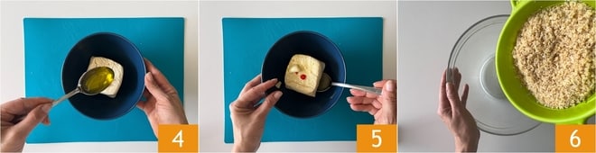 Bringen Sie leicht gesalzenes Wasser zum Kochen und kochen Sie den Bulgur 1. Es dauert etwa 7 Minuten, aber die Kochzeit kann je nach Art des Bulgurs variieren. Schälen Sie in der Zwischenzeit eine Knoblauchzehe und zerdrücken Sie sie. Tupfen Sie den Tofu mit Küchenpapier ab 2 und marinieren Sie ihn in einer Schüssel mit dem Knoblauch; fügen Sie eine halbe gehackte Chilischote hinzu 3.