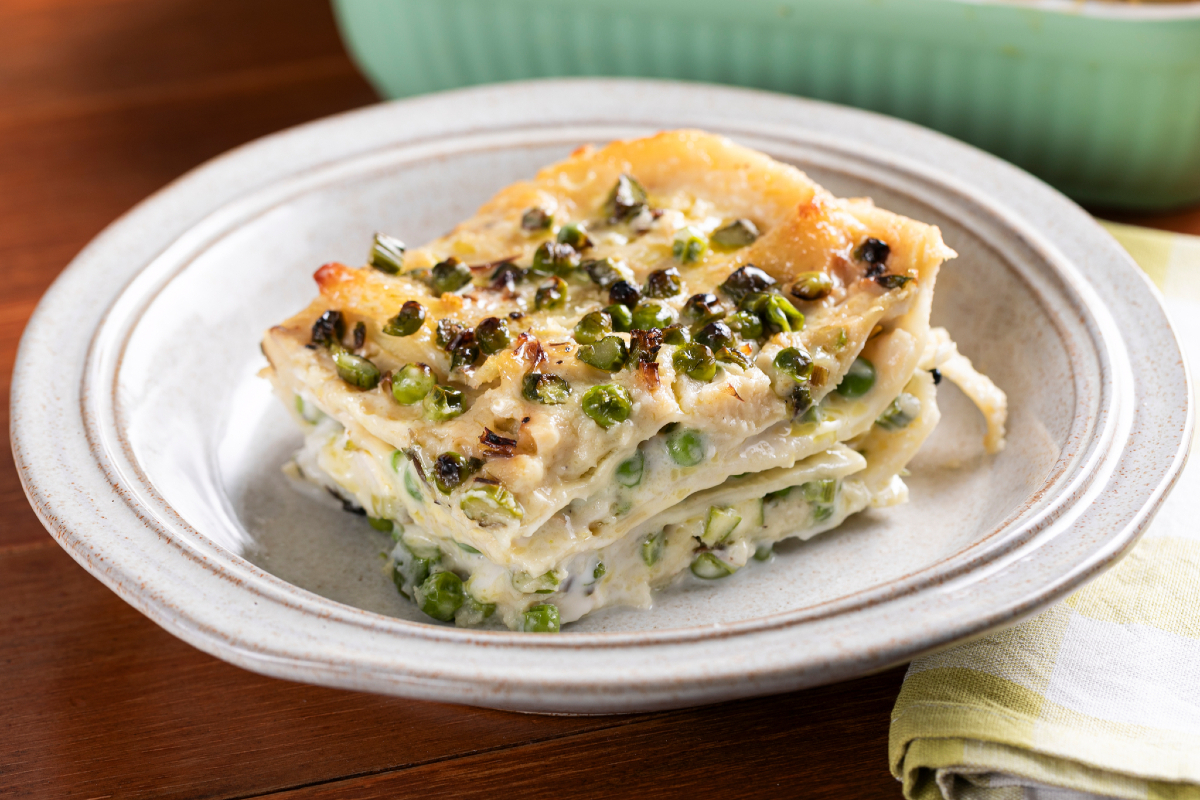 Das Geheimnis des Erfolgs dieser Vegane Lasagne liegt im perfekten Gleichgewicht der Texturen: die Süße der Erbsen harmoniert mit dem Charakter des frischen Spargels, alles umhüllt von einer überraschend aromatischen und samtigen pflanzlichen Béchamel, verfeinert mit etwas Zitronenschale, die eine unerwartete Frische verleiht.