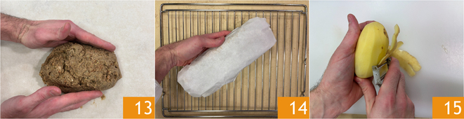 Auf ein Blatt Backpapier geben und die Mischung in die klassische Bratenform bringen 13. Wickeln Sie es wie ein Bonbon ein und lassen Sie es über Nacht im Kühlschrank ruhen. Am nächsten Tag auf ein Gitter legen und im vorgeheizten, statischen Ofen bei 220° etwa 40 Minuten backen 14. Wenn Sie möchten, können Sie es mit Kartoffeln servieren, die Sie rösten können. Nachdem Sie sie gewaschen haben, schälen Sie sie 15.<\/p>