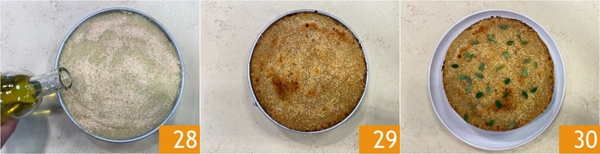 Geben Sie einen Schuss Olivenöl extra vergine darüber. Backen Sie den Auflauf in einem vorgeheizten Umluftofen bei 180 °C für 35–40 Minuten, bis die Oberfläche schön goldbraun ist. Lassen Sie den Auflauf nach dem Backen 10–15 Minuten ruhen, bevor Sie ihn anschneiden: dieser Schritt ist wichtig, damit sich feste Scheiben schneiden lassen. Der vegane Auflauf ist servierbereit 30.