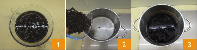 Um die vegetarischen Burger zuzubereiten, lasst die schwarzen Kichererbsen mindestens 24 Stunden einweichen 1. Dann gießt ihr sie ab, spült sie und lasst sie in reichlich Wasser köcheln 2 – etwa 1 bis 1½ Stunden, bis sie weich sind. Sobald sie gekocht sind 3, gießt ihr sie ab und lasst sie leicht abkühlen.