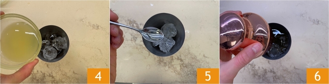 Filtern Sie den Zitronensaft und fügen Sie ihn zu den anderen Zutaten hinzu 4. Wenn Sie möchten, können Sie auch ein paar Tropfen pasteurisiertes Eiweiß hinzufügen 5. Verschließen Sie den Deckel gut und schütteln Sie den Shaker kräftig 6.