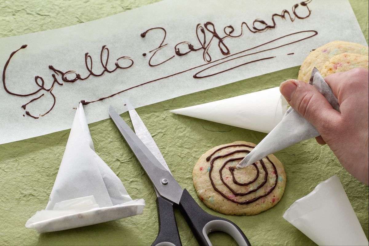 Sie benötigen nur ein Blatt Backpapier, eine Schere und ein wenig Übung, um es herzustellen! Sehen wir uns an, welche Schritte erforderlich sind, um Kekse, Kuchen und kleine Süßigkeiten perfekt zu dekorieren!