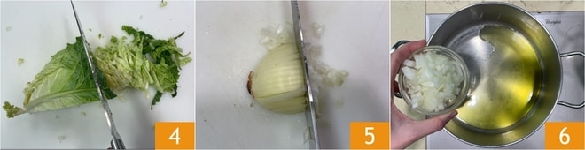 Schneiden Sie den Rest des Wirsings in Streifen 4, dann würfeln Sie die andere Hälfte der Zwiebel fein 5. Geben Sie die Zwiebel in einen Topf, in dem Sie etwas Öl erhitzt haben 6.