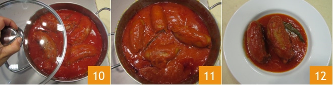 mit dem Deckel abdecken und bei schwacher Hitze ca. 25 Minuten kochen lassen 10. Am Ende entscheiden Sie die Konsistenz der Soße nach Ihrem Geschmack, es genügt, die Kochzeit um einige Minuten zu verlängern, besser ohne Deckel, wenn Sie ein dickeres Gewürz möchten 11. Hier sind Ihre Würstchen in Soße bereit, guten Appetit 12