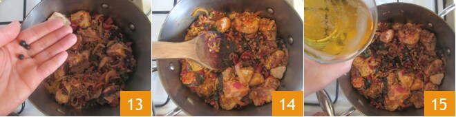 Fügen Sie die Wacholderbeeren hinzu 13 und rühren Sie gut um 14, dann bedecken Sie mit Bier 15.