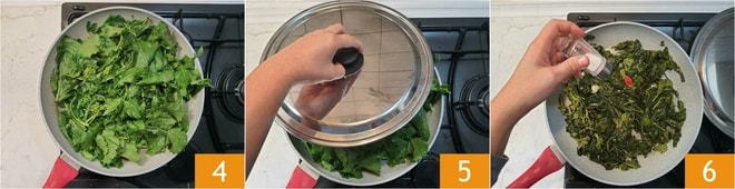 erhitzen Sie alles und geben Sie dann auch die Stängelkohl hinzu 4. Decken Sie die Pfanne mit einem Deckel ab und braten Sie die Stängelkohl, bis sie schön weich sind 5. Rühren Sie häufig mit einem Holzlöffel um und fügen Sie in der Mitte der Garzeit Salz hinzu. Nehmen Sie sie vom Herd, wenn sie schön weich und geschrumpft sind 6.