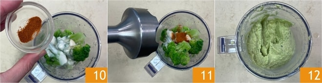 Schließlich würzen Sie mit Paprika 10 und pürieren 11 bis eine glatte und homogene Konsistenz erreicht ist 12.