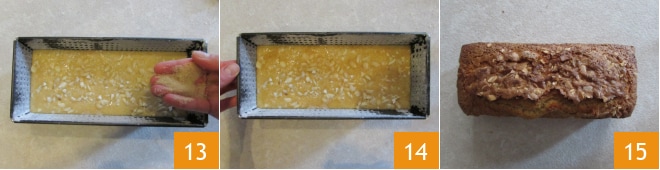 und den 20 g braunen Zucker für die Oberfläche 13. Der Öl- und Zitronenkuchen ist bereit, um im mittleren Fach im vorgeheizten statischen Ofen bei 180° etwa 55-60 Minuten zu backen. Führen Sie immer die Stäbchenprobe durch, bevor Sie ihn aus dem Ofen nehmen, und wenn die Oberfläche nach 30-40 Minuten zu stark gebräunt ist, decken Sie sie mit Pergamentpapier oder Aluminiumfolie ab. Lassen Sie ihn nach dem Backen abkühlen, bevor Sie ihn aus der Form nehmen 15.