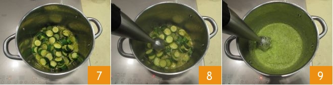 Kochen Sie alles weitere 15-20 Minuten 7, dann pürieren Sie alles mit einem Stabmixer 8, bis eine Creme entsteht 9.