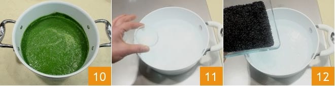 bis Sie eine glatte Creme erhalten, eine Art samtige Suppe 10. In einem separaten hohen Topf salziges Wasser erhitzen 11, wenn es kocht, den Venere-Reis hineingeben 12 und etwa 20 Minuten oder gemäß der Packungsanweisung kochen lassen.